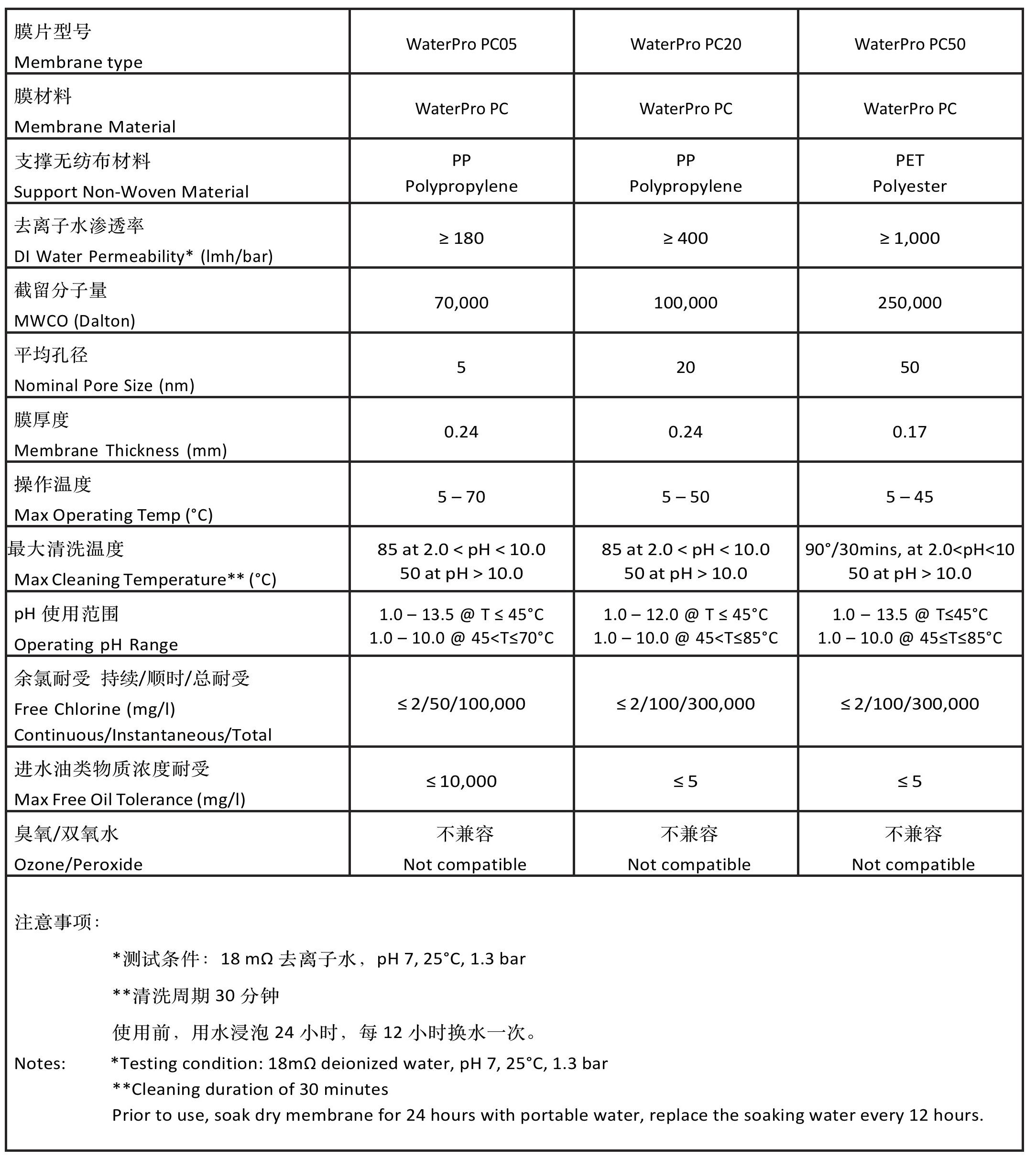 WaterPro PC膜是聚芳香胺新材料制備的新一代高分子膜,采用分子設計和仿生學原理,結合高分子膜材料設計原理,綜合有機高分子膜材料和陶瓷膜材料的性能而設計生產的。